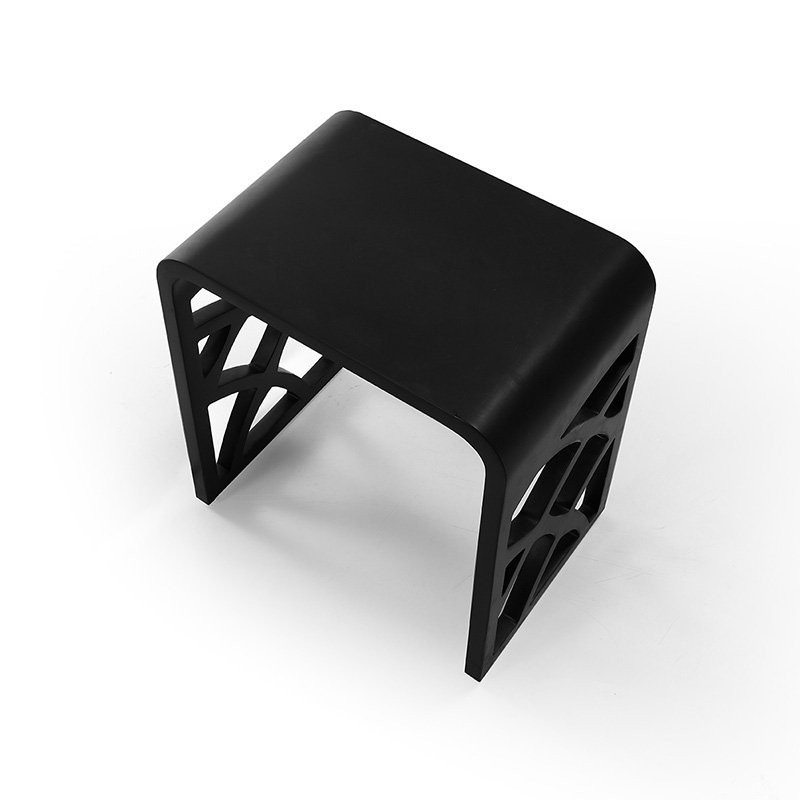 The distinctive hollow-out side design not only reduces weight but also enhances visual appeal, making it a perfect fit for modern, minimalist, and design-oriented bathroom spaces. It can be used as a shower seat, side stool, or auxiliary support, improving both comfort and usability for users.