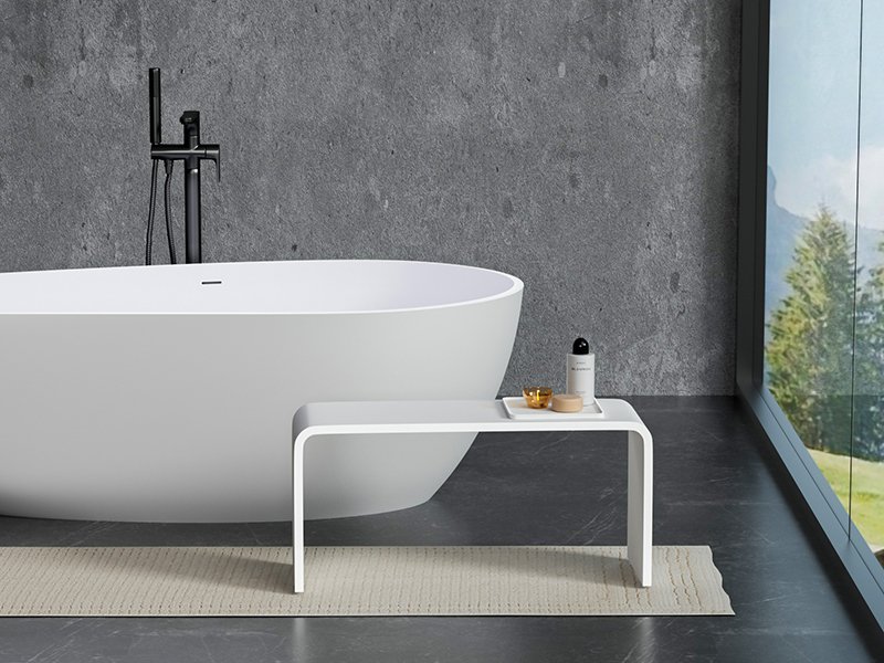 Solid Surface Decorative Shower Stool for Bathroom | Modern Cut-Out Design Bath Seat for Hotel & Commercial Use