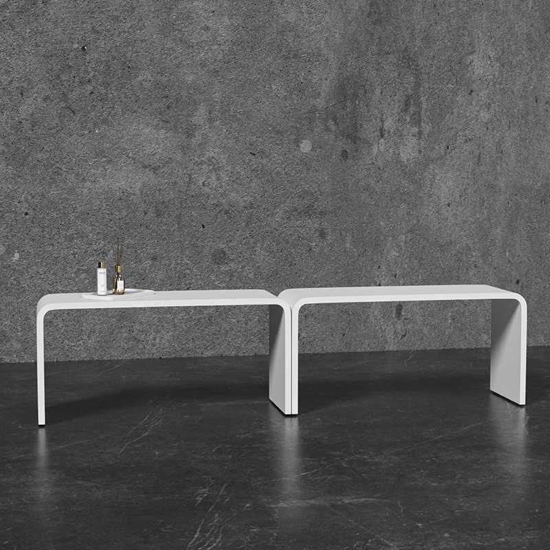 This solid surface shower bench seat is designed to provide extended seating space and enhanced comfort in modern bathroom environments. With its elongated structure, it is ideal for spa areas, hotel bathrooms, wellness centers, and residential projects where multi-user or more spacious seating is required.