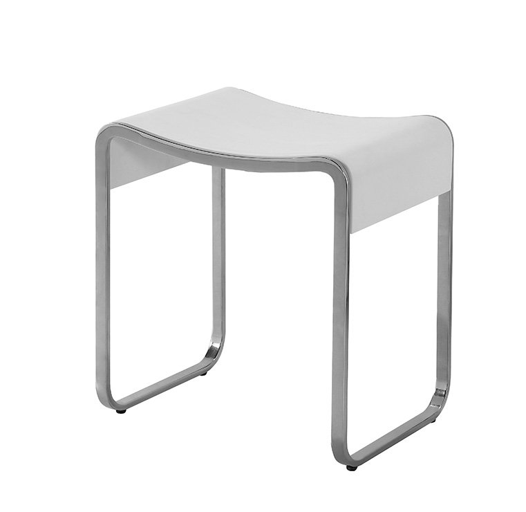 With its minimalist curved design and exposed metal frame, this shower stool fits perfectly into modern, industrial, and contemporary bathroom styles. It can be used as a shower seat, auxiliary stool, or functional support element, improving both user comfort and overall space design.