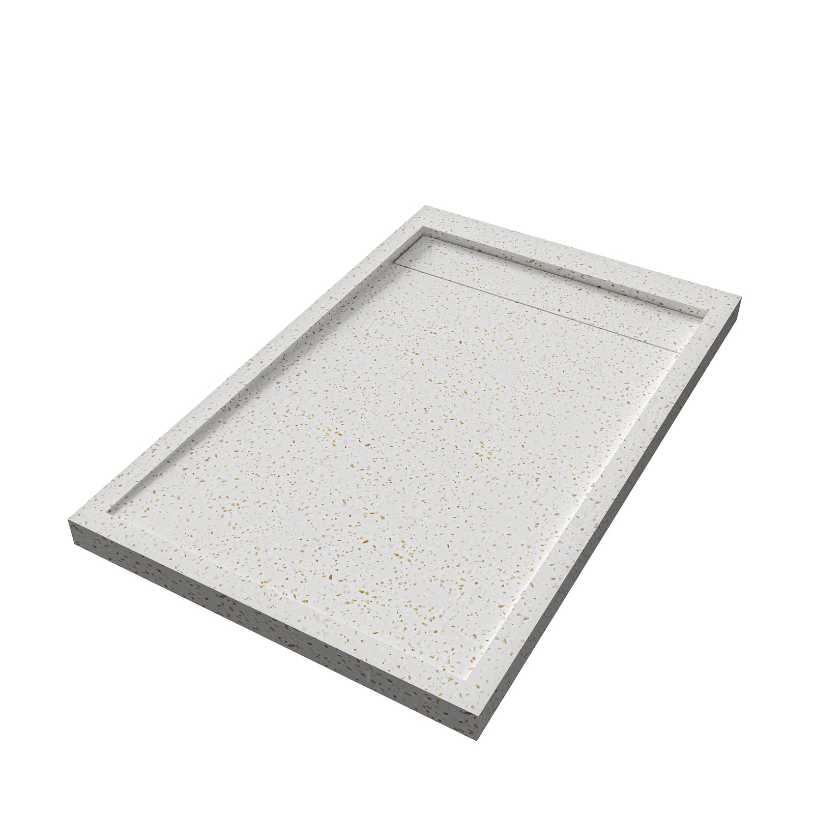 Terrazzo solid surface shower tray with speckled design. Durable, hygienic, and ideal for modern bathroom and hotel projects.