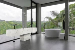 - Glacier White Solid Surface: Each bathroom vanity and sink was crafted in glacier white, offering a clean, timeless look that appeals to apartment buyers seeking modern sophistication.