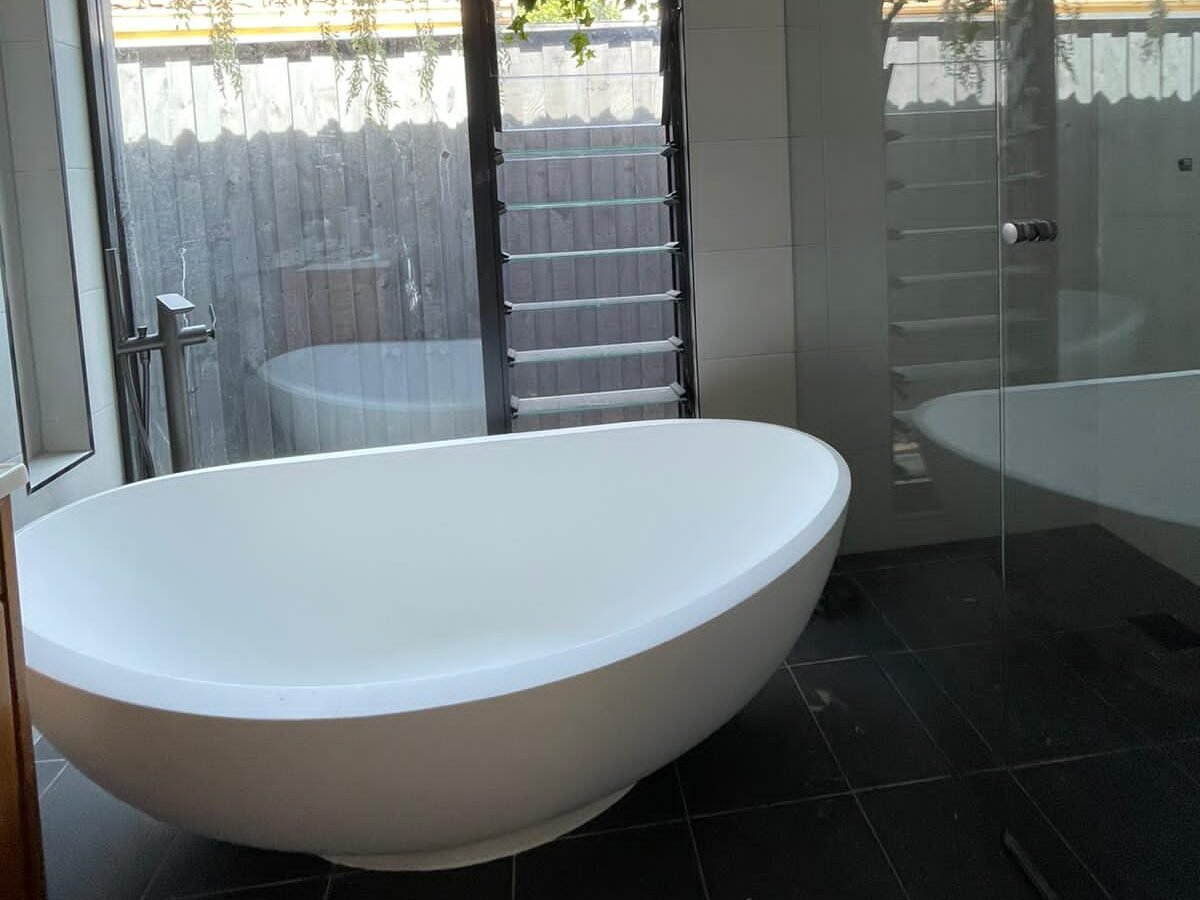 A freestanding solid surface bathtub can weigh up to 180 kg empty — nearly double an acrylic tub. Once filled with water and a person, total weight can exceed 400 kg (880 lbs).