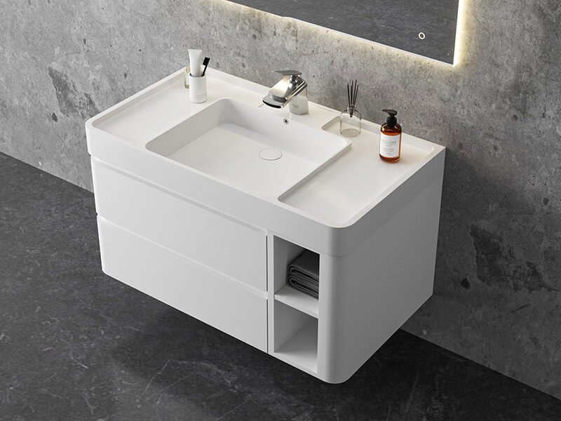 With proper care, solid surface vanities can last 15–20 years or more, maintaining their smooth finish and resistance to wear.