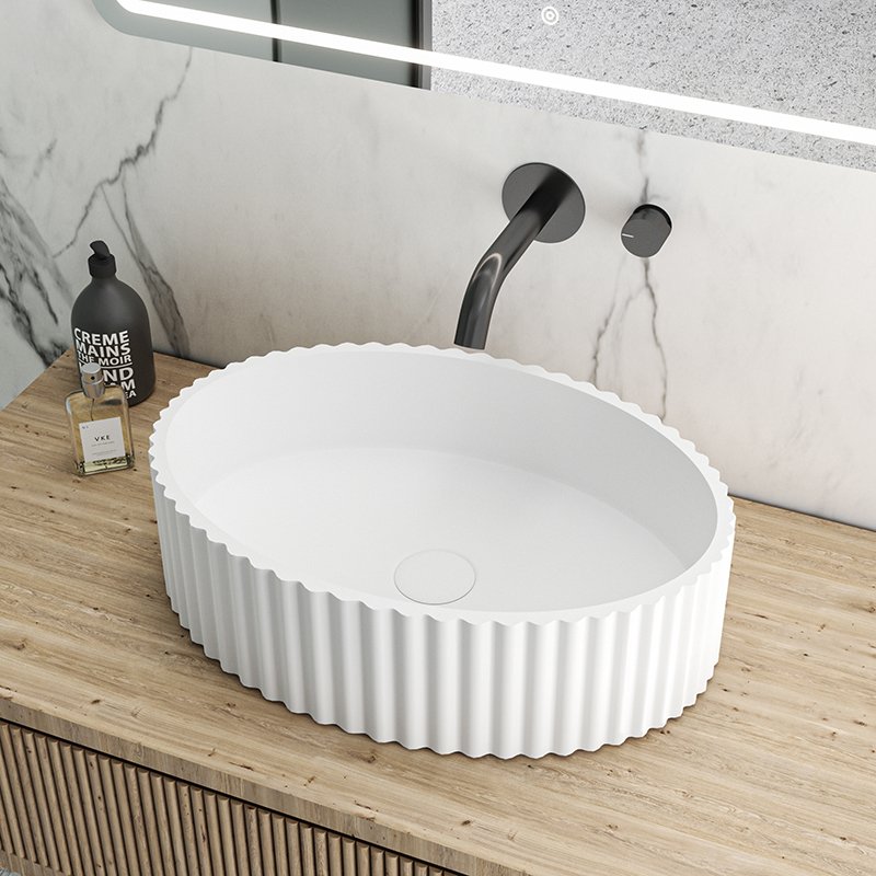 In premium apartment projects, countertop basins add a luxury feel to master bathrooms without a significant increase in cost. Pairing a countertop solid surface basin with a floating vanity is a popular combination in high-end residential projects where design quality is part of the selling point.