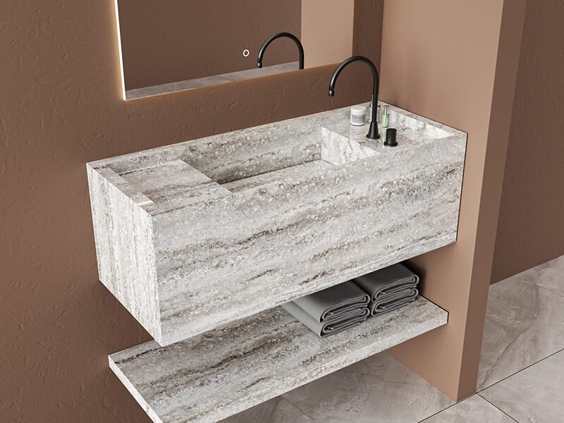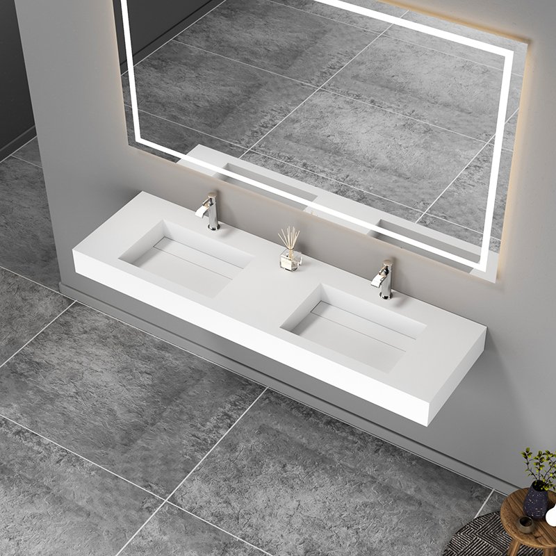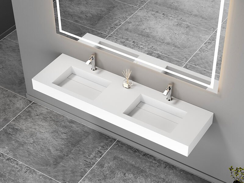 Solid surface is the most popular choice across hotels, apartments, healthcare facilities, and any project where hygiene and durability are priorities. It is non-porous, which means it does not absorb bacteria or moisture. It is easy to clean, resistant to staining, and available in both wall mounted and countertop styles. Surface scratches can be sanded out, which extends the lifespan significantly. For large projects, solid surface is the practical choice -consistent, low maintenance, and built to last.