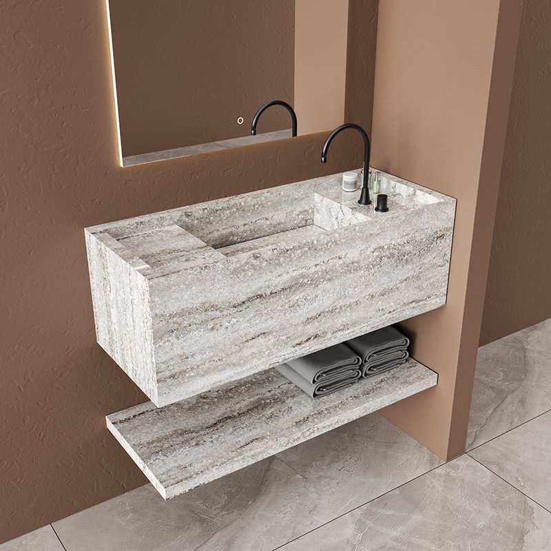 A wall mounted basin is fixed directly onto the wall and has no cabinet or pedestal below. The plumbing is hidden inside the wall or behind a slim panel, so that leaves the floor completely open below the basin. This type of bathroom basin is mostly installed in hotels, apartments, and commercial bathrooms where space efficiency and clean design matter. Wall-mounted basins are available in ceramic, solid surface basin options, stone resin, and quartz, giving designers a wide range of options in both style and finish.